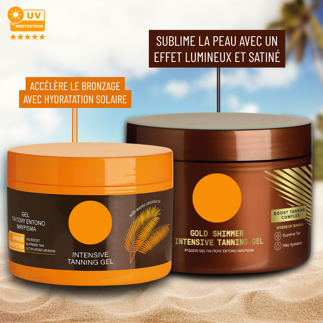 đŸ”„đŸ”„Kit Bronze Glow – Gel AccĂ©lĂ©rateur de Bronzage + Gel Illuminateur Gold Shimmer